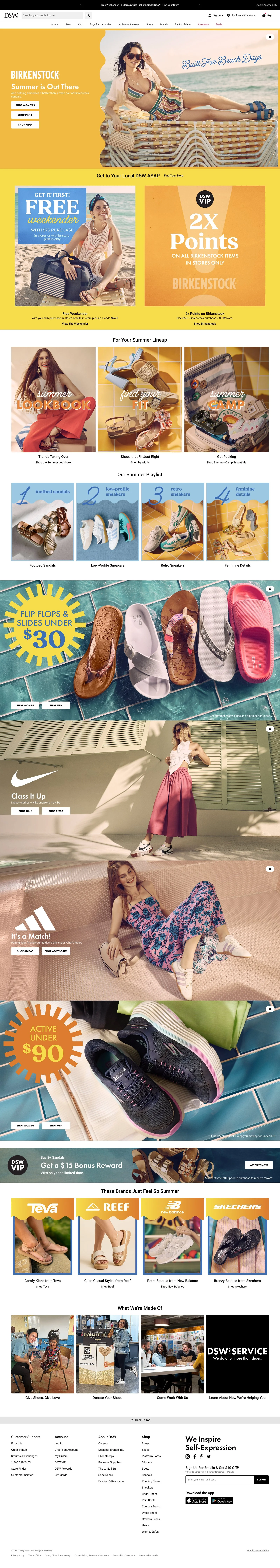 Sample of DSW homepage execution for seasonal launches. Includes 2025 homepages for Winter, Spring, Summer and Back-To-School seasons.